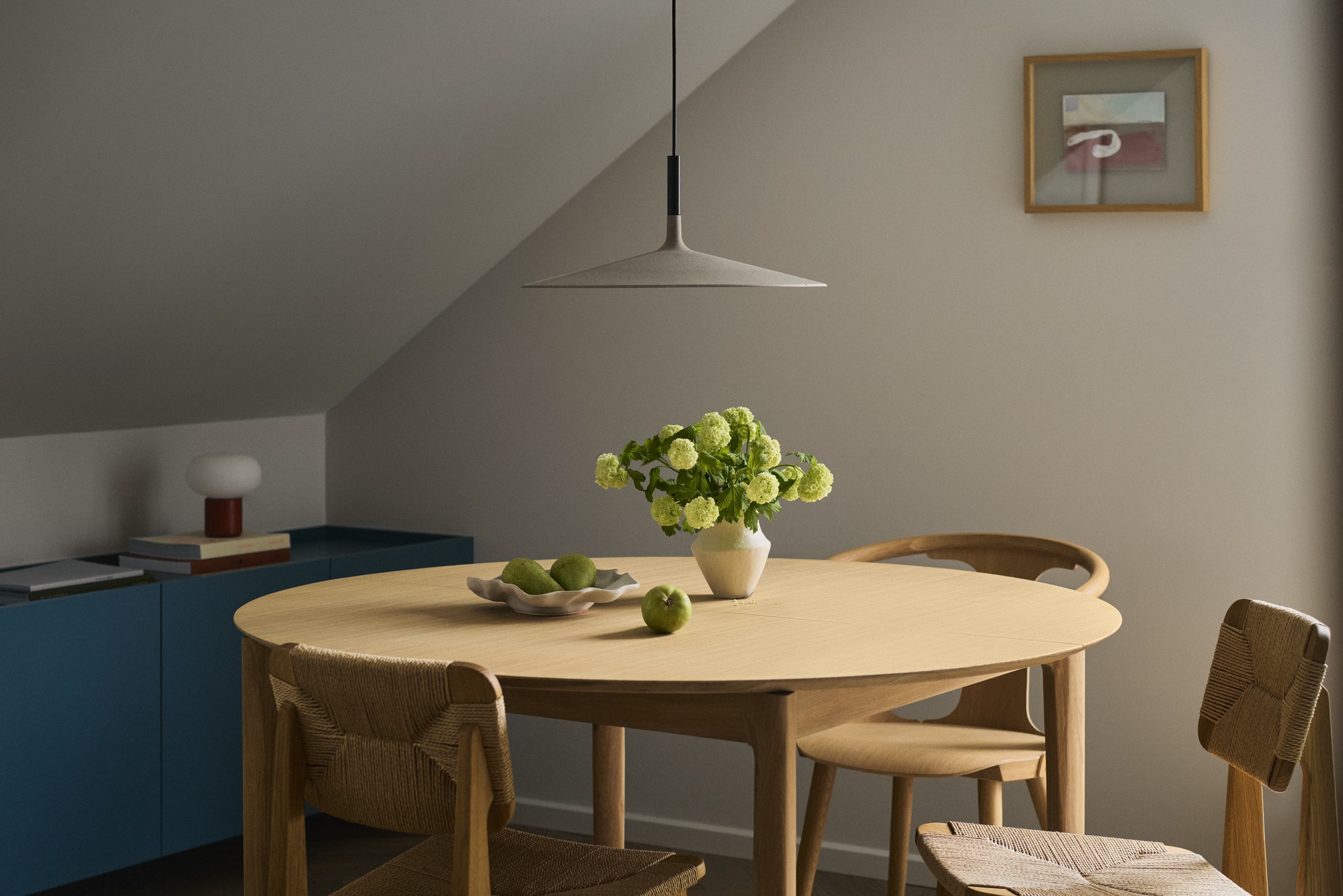 Trudnym elementem do zagospodarowania były skosy, ale dzięki odpowiedniemu rozplanowaniu nie odnosimy wrażenia nieładu, a wręcz przeciwnie. Całość łączy się ze sobą.